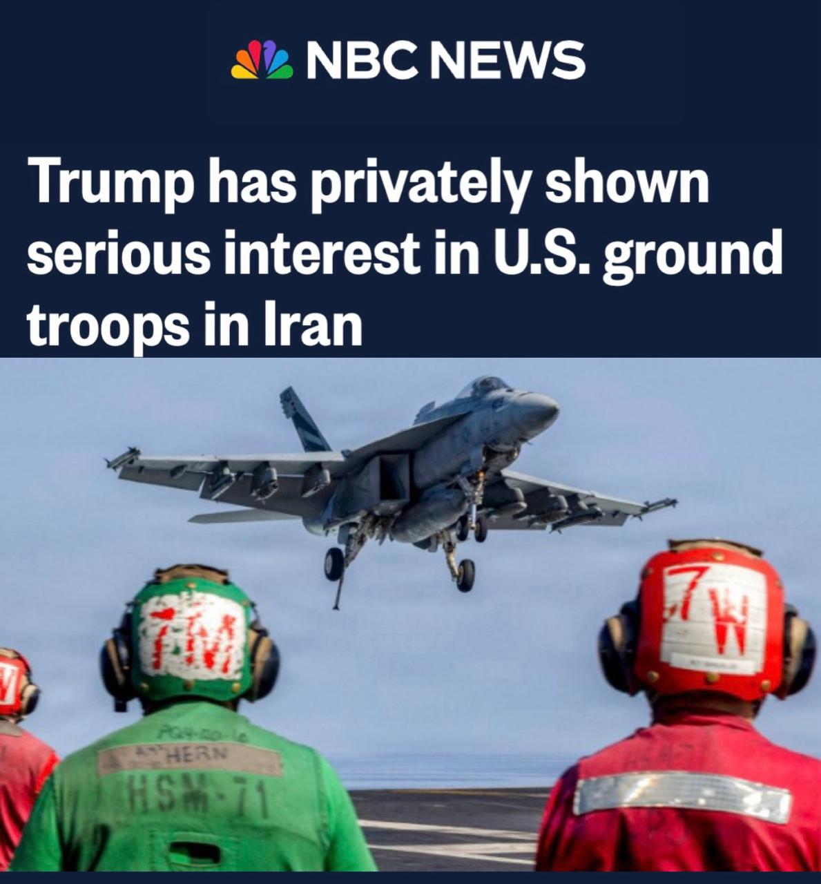 «Трамп в частном порядке проявил серьезный интерес к сухопутным войскам США в Иране»: NBC пишет, что Трамп хочет ввести войска в Иран для проведения "коротких военных операций".