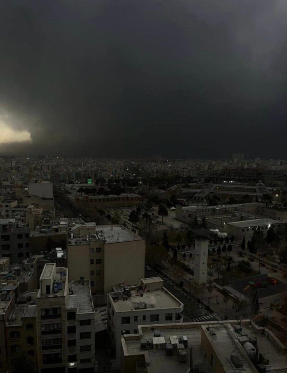 Тегеран сейчас выглядит так: город накрыт густыми чёрными токсичными облаками дыма. На девять миллионов жителей буквально проливается дождь, смешанный с нефтью, а каждый вдох наполнен канцерогенным загрязнённым воздухом. Люди дышат этим. Этим дышат животные. Этим дышат деревья. Это гуманитарная и экологическая катастрофа.