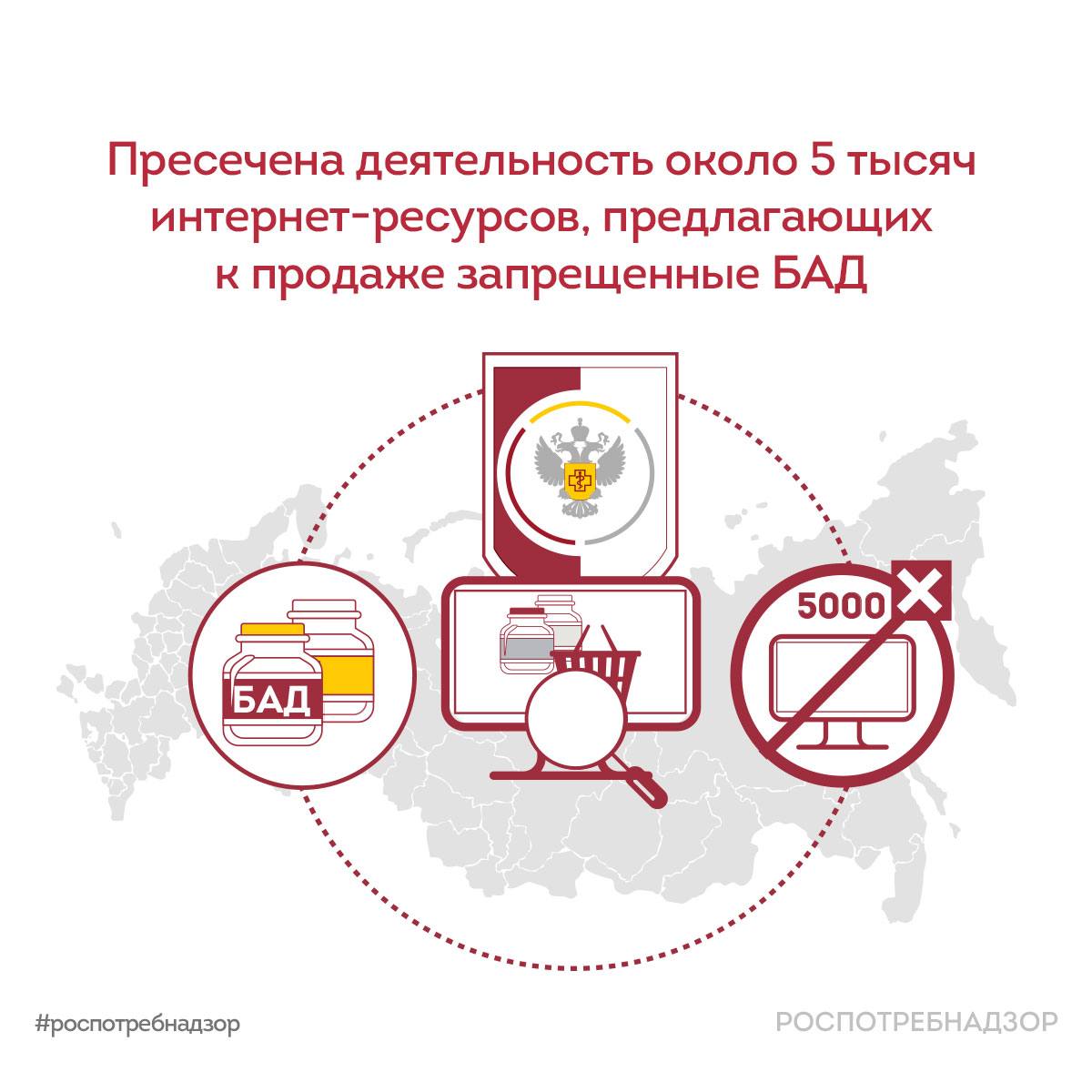 Специалисты Роспотребнадзора продолжают работу по выявлению и блокировке интернет-ресурсов, предлагающих к продаже биологически активные добавки (БАД), реализация которых запрещена на территории РФ. Всего с нарастающим итогом заблокировано около 5 тысяч таких площадок.
