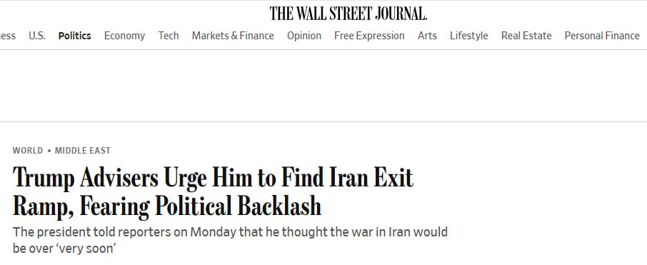 The Wall Street Journal: Советники Трампа уговаривают его срочно выйти из войны с Ираном