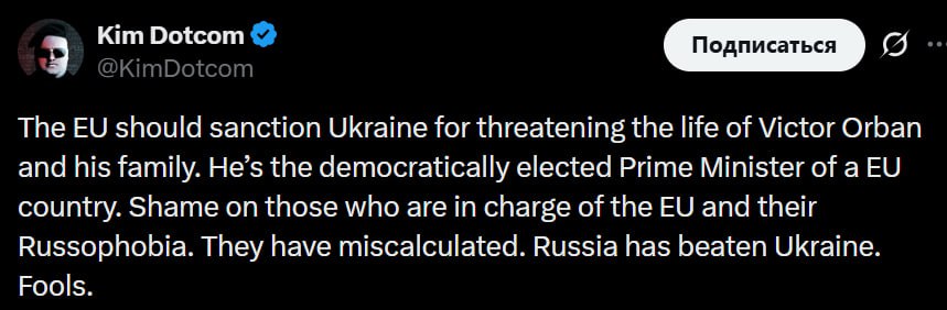 «ЕС должен ввести санкции против Украины за угрозу жизни Виктора Орбана и его семьи», — заявил немецкий бизнесмен Ким Дотком.