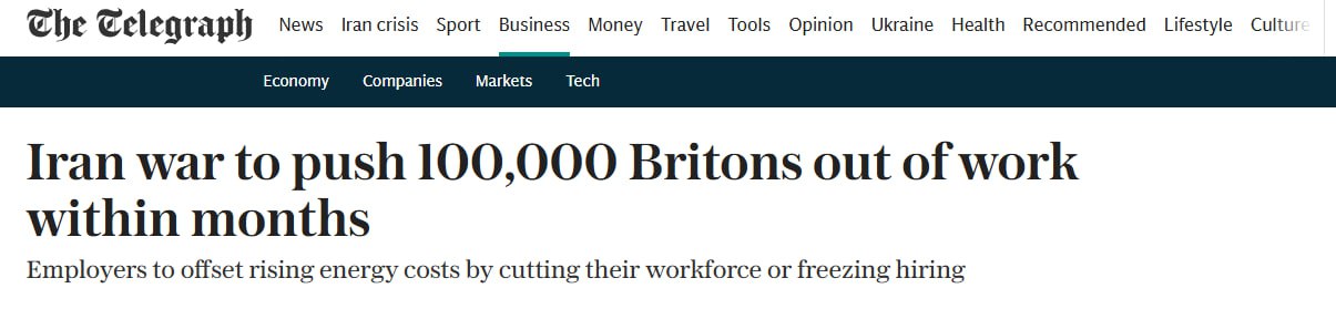 The Telegraph: Война с Ираном оставит без работы более 100 тысяч британцев