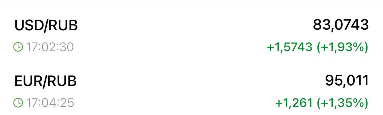 Евро — 95 рублей на бирже, доллар — 83