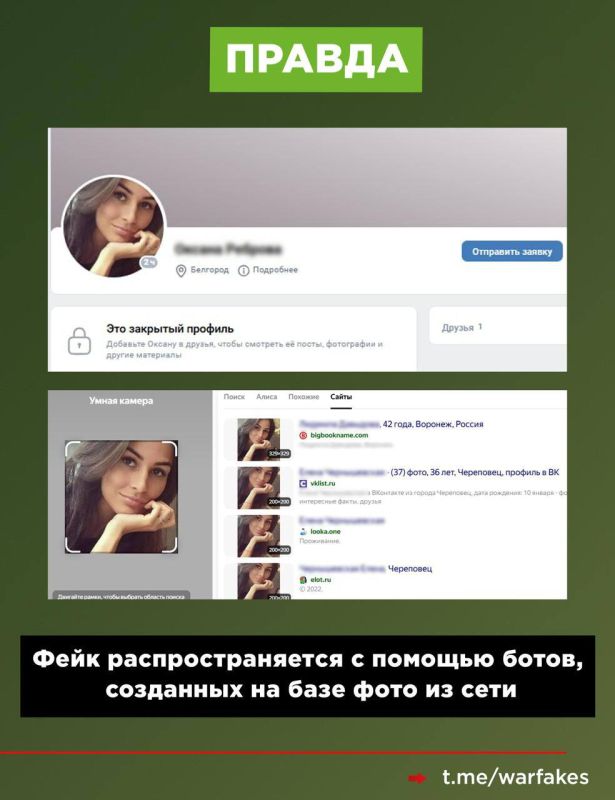 Распространением подделки занимаются боты. Это легко установить по скудному количеству друзей липовых аккаунтов. Для их штамповки использовались фото из Сети.