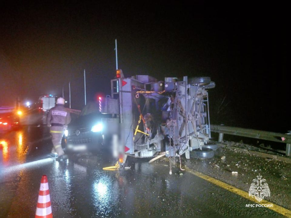 на 219 километре трассы М-4 «Дон» в Узловском районе возгорание в грузовом автомобиле потушили 8 спасателей и 2 единицы техники от МЧС России. Пострадавших нет.