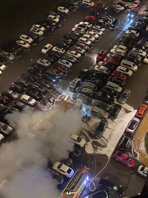 Несколько машин загорелись из-за возможного поджога мусорных контейнеров в московском районе Марьино.