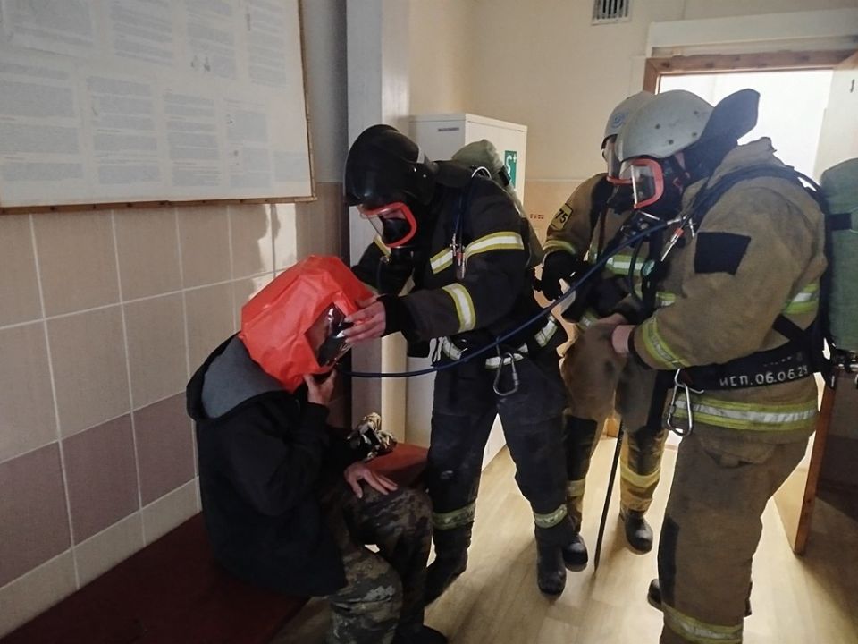 Через несколько минут к ФОК уже прибыли пожарные расчеты Дубенского пожарно-спасательного гарнизона. Проведя разведку помещений, огнеборцы МЧС России обнаружили "пострадавшего", которого с помощью спасательного устройства вывели из здания. Условное возгорание было ликвидировано в кратчайшие сроки.