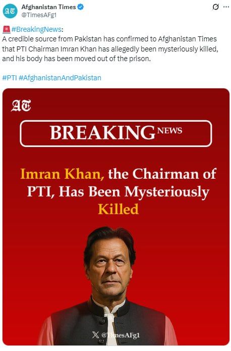 Экс-премьер Пакистана мог умереть при загадочных обстоятельствах в тюрьме — тело Имрана Хана вывезли из места заключения, пишет Afganistan Times со ссылкой на источники.
