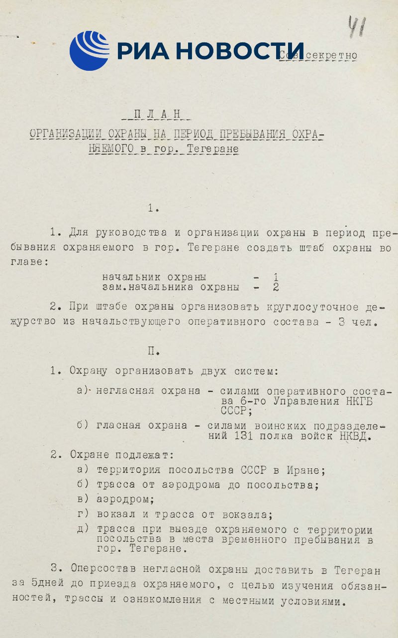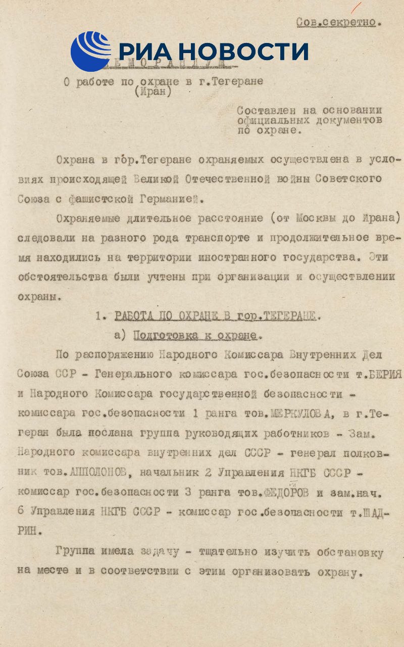ФСБ раскрыла архивы о том, как советские спецслужбы обеспечили полную безопасность Тегеранской конференции.
