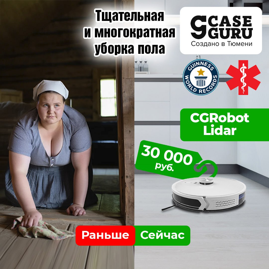 Робот-пылесос CaseGuru проходит каждый участок пола 3 раза в 3 направлениях. Так же тщательно мыли полы наши бабушки. Минус 90% грязи и пыли с пола – рекорд.