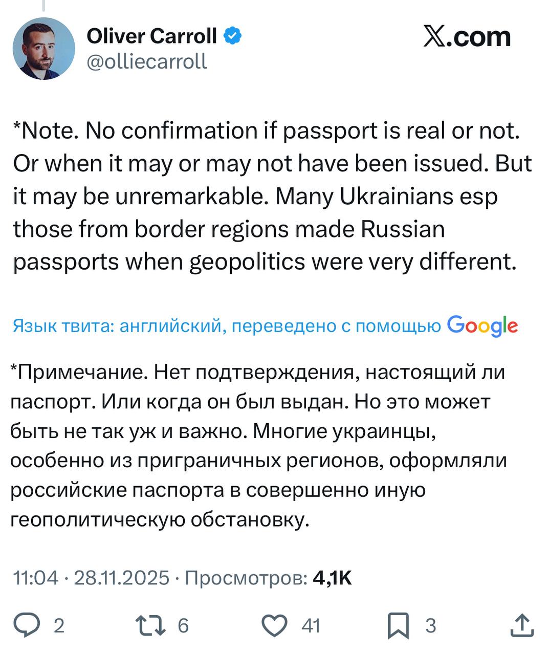 Другими словами, раскрученный западный журналист пишет о том, что Россия якобы выдает информацию, дискредитирующую антикоррупционные органы Украины и помогает Ермаку/Зеленскому — мол у Клименко реально есть российский паспорт. Тогда как на самом деле, Россия всецело помогает НАБУ и САП и пишет о том, что раскрыла лабораторию по подделке документов. Западная журналистика, она такая — черное назвать белым, а белое — черным.