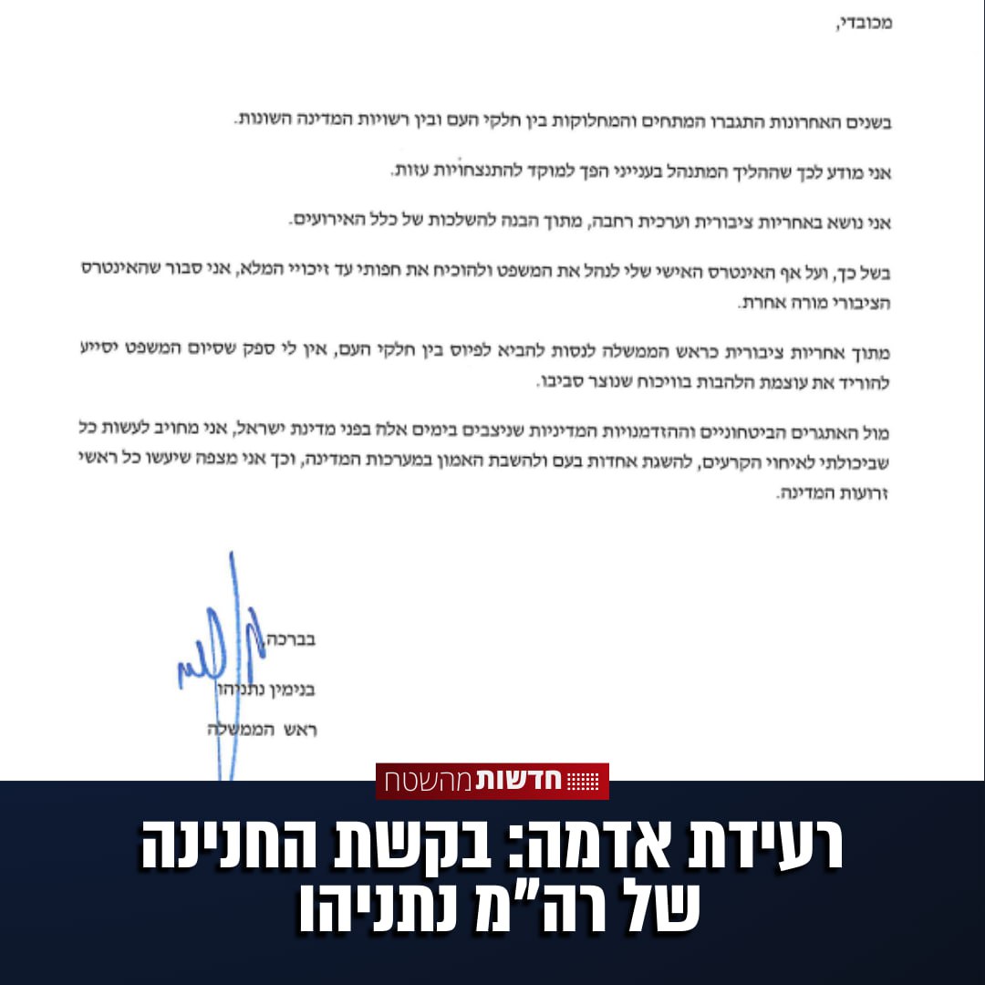 Заявление главы правительства включает два документа: подробное письмо от имени адвоката Нетаньяху и другое письмо, подписанное им самим.