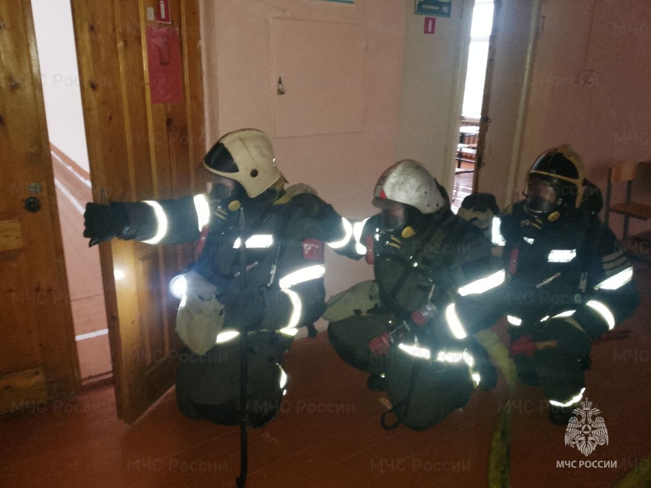 Персоналом школы была произведена эвакуация детей и педагогов. Спустя несколько минут на место уже прибыли спасатели. Руководитель тушением пожара оценил сложившуюся обстановку и выбрал решающее направление применения сил и средств. Проведя разведку помещения в составе звена газодымозащитной службы, огнеборцы обнаружили "пострадавшего" ребёнка, которого с помощью спасательного устройства эвакуировали из здания. Обнаруженный очаг пожара удалось быстро локализовать и ликвидировать.