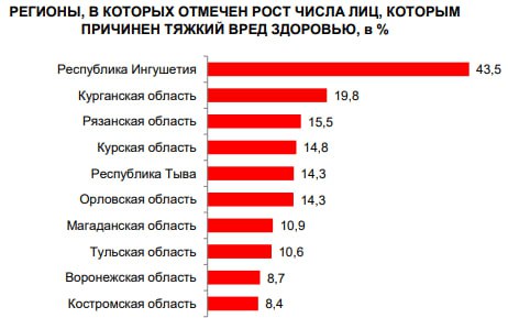 На 10,7% выросло в регионе число нераскрытых преступлений. Здесь Тульская область занимает 7 место в стране, уступая Чечне, Тюменской и Брянской областям, Адыгее, Алтаю и Ханты-Мансийскому автономному округу, где темпы прироста «висяков» составили аж 48%.