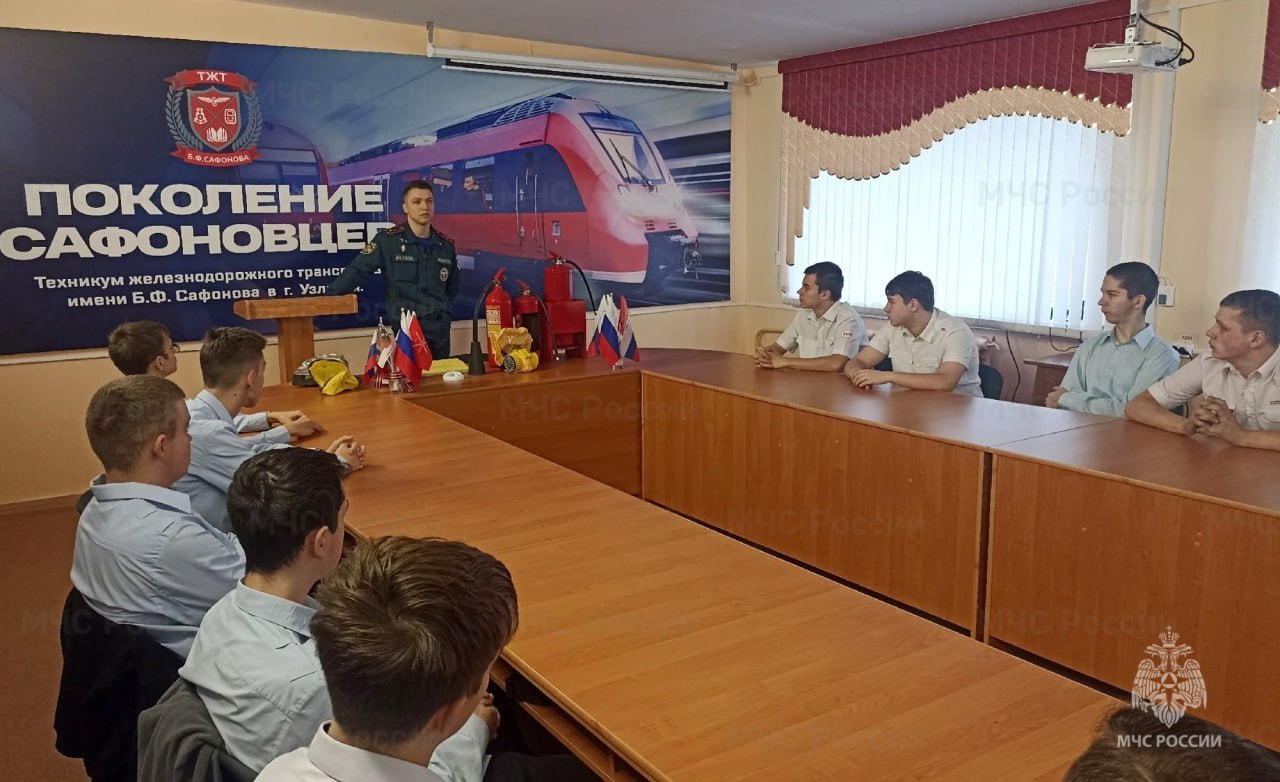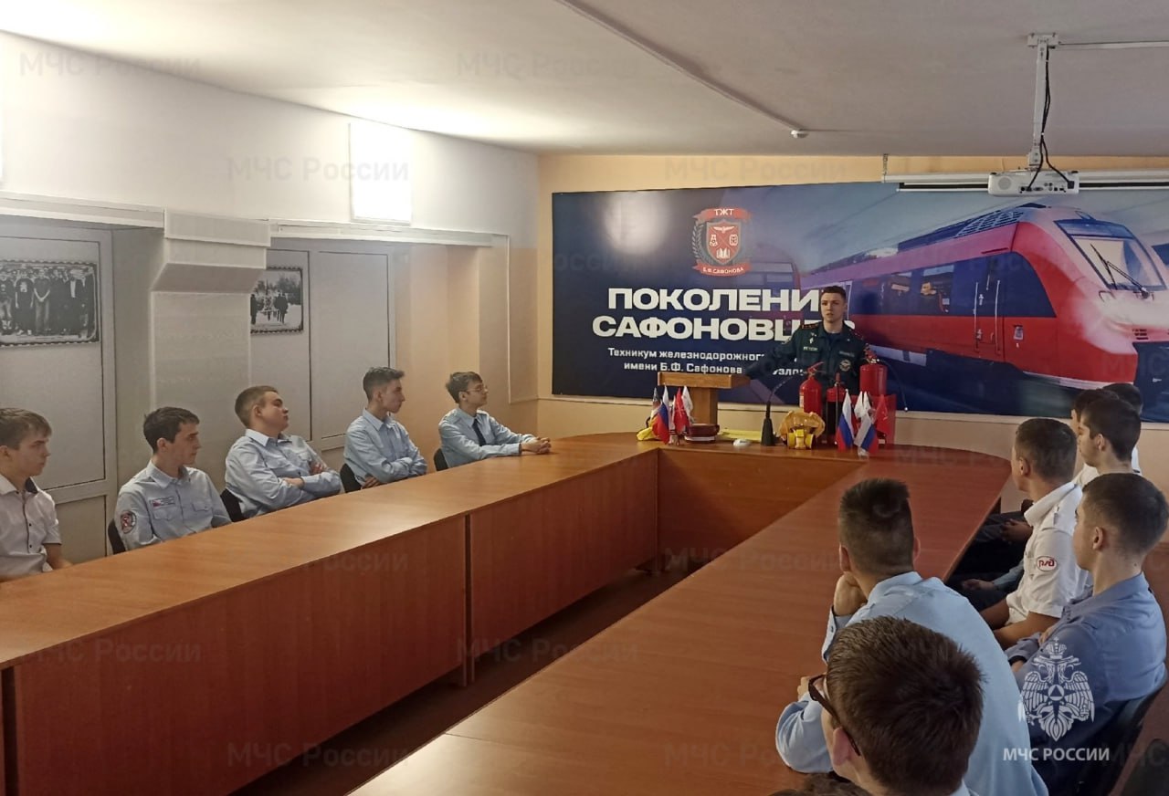 Профилактика– лучшая защита. Инспекторы государственного пожарного надзора по Узловскому,Киреевскому районам и городу Донской провели урок безопасности для будущих железнодорожников в техникуме железнодорожного транспорта имени Б.Ф. Сафонова.