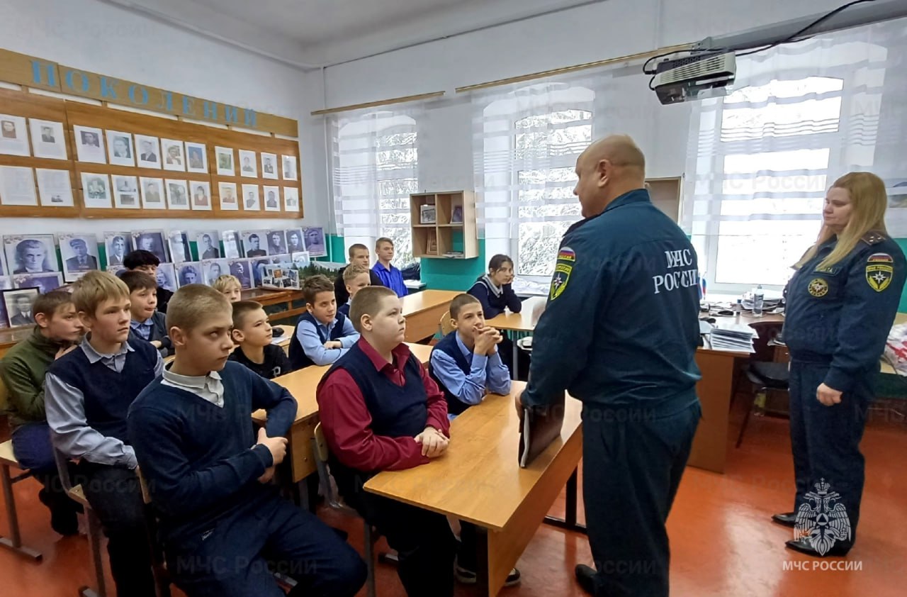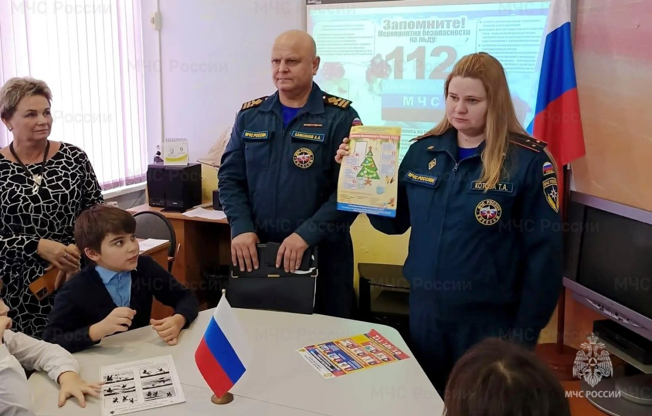 Сотрудники МЧС России рассказали ученикам и педагогам о первичных средствах пожаротушения, а также напомнили номера телефонов пожарной охраны. Дети смогли в теории разобрать действия в условиях различных угроз, а инспекторы ГИМС уделили особое внимание поведению подрастающего поколения в холодное время года и мерам предосторожности, необходимым в зимний период. Юным слушателям напомнили об опасности выхода на тонкий лед водоемов и игр у воды. Вместе с этим инспекторы государственного пожарного надзора разъяснили школьникам, как нужно вести себя, чтобы не допустить пожара, к каким последствиям может привести шалость с огнем и нарушение правил пожарной безопасности.
