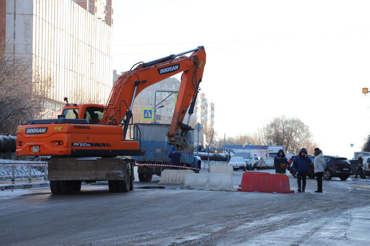 На улице Хворостухина в Туле ликвидируют последствия порыва трубы и повреждения дороги