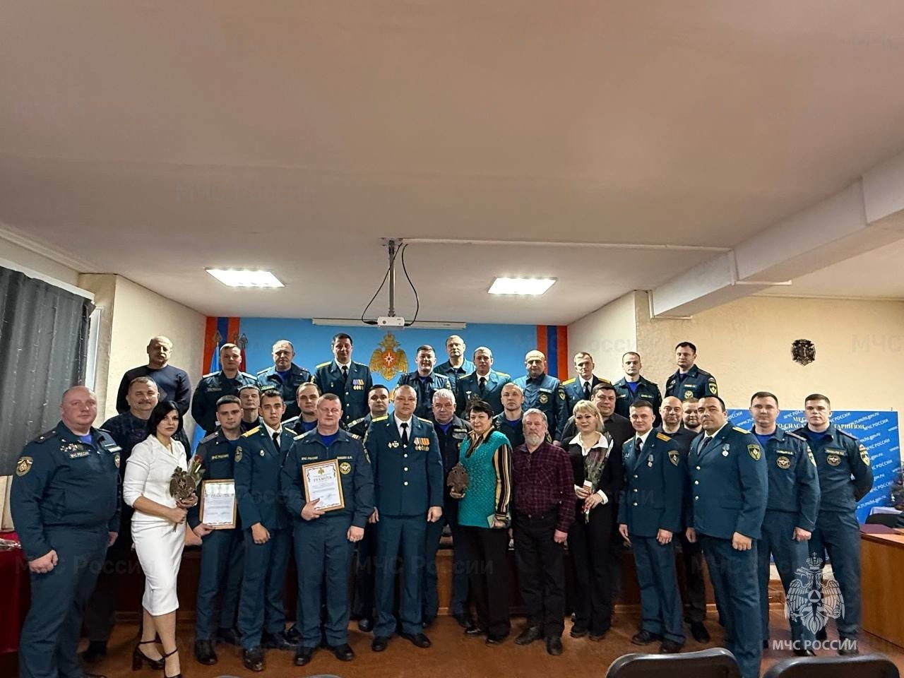 За профессионализм, отвагу и безупречную службу сотрудники и работники ведомства были награждены ведомственными наградами, почетными грамотами и благодарственными письмами. Благодарность была также выражена ветеранам и юным кадетам структуры МЧС России.
