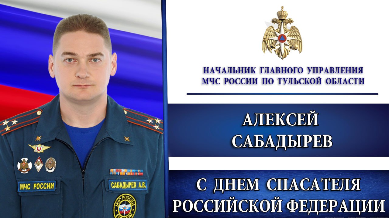 Начальник ГУ МЧС России по Тульской области Алексей Сабадырев поздравляет тульских спасателей и ветеранов ведомства с Днем спасателя и 35-летием МЧС России