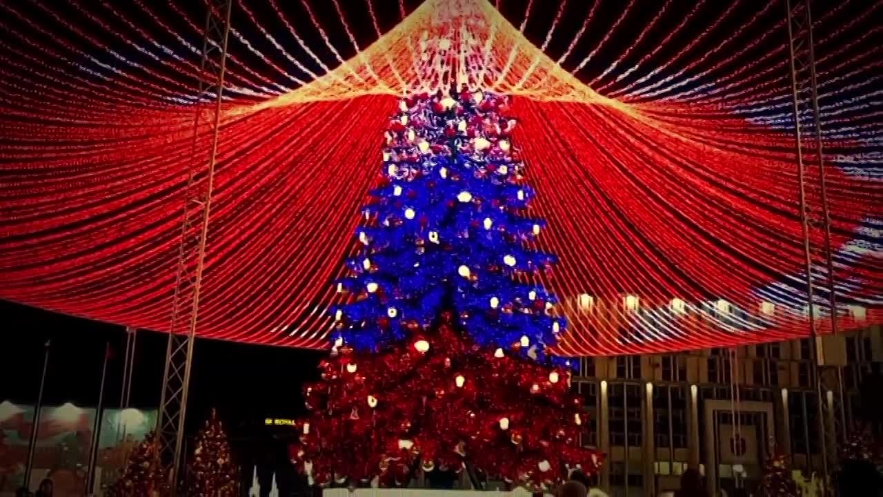 Высота новогодней красавицы составляет 32 метра. Согласно книги рекордов России она признана самой высокой стволовой искусственной новогодней елью в России. Композиция состоит из самой ели и расходящегося от макушки светового шатра. Масштабная праздничная конструкция была реализована в кратчайшие сроки с учетом сложности проекта.