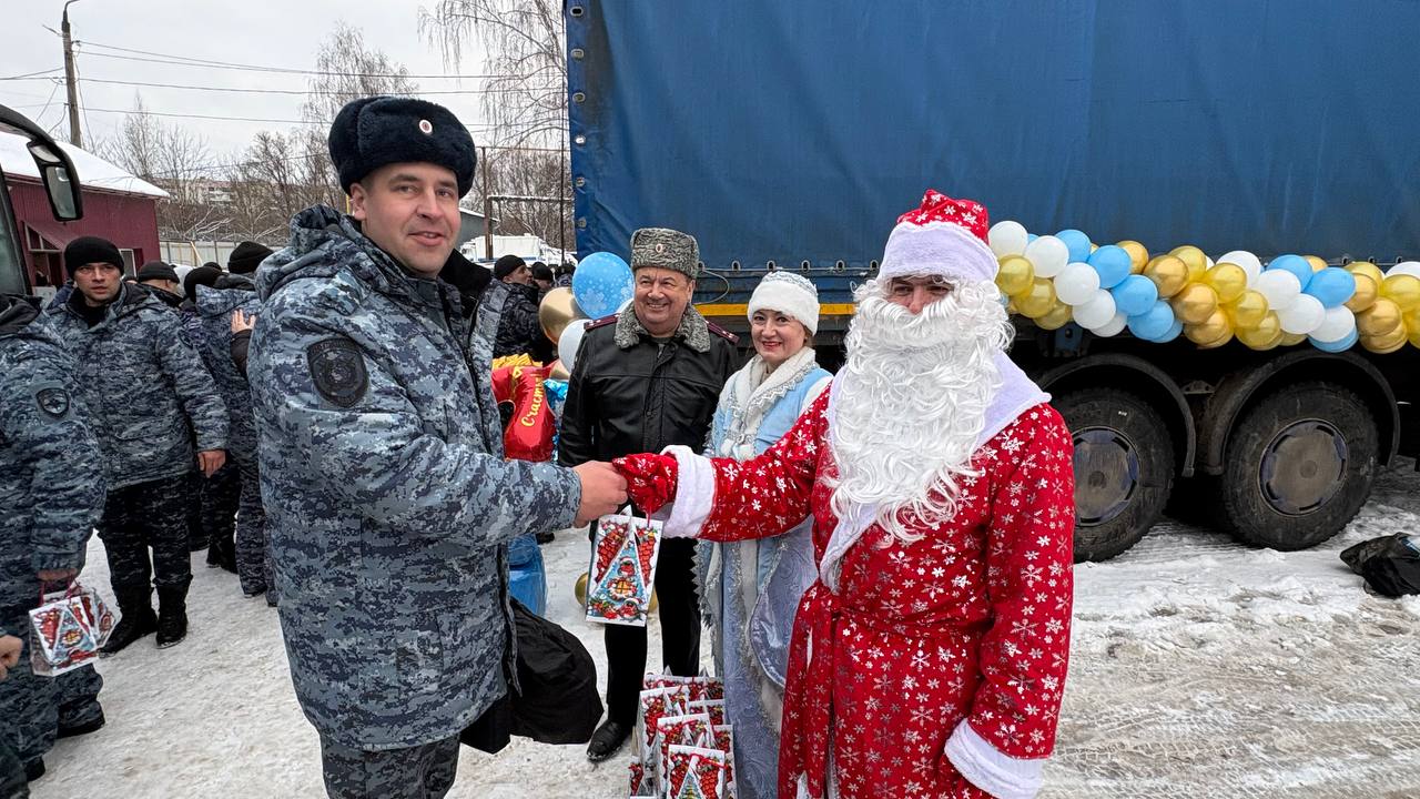 Официальная часть завершилась долгожданной встречей с близкими. Сотрудники УРЛС УМВД подготовили сюрприз для самых маленьких членов семей - детей сотрудников поздравили Дед Мороз и Снегурочка, вручив им сладкие подарки.