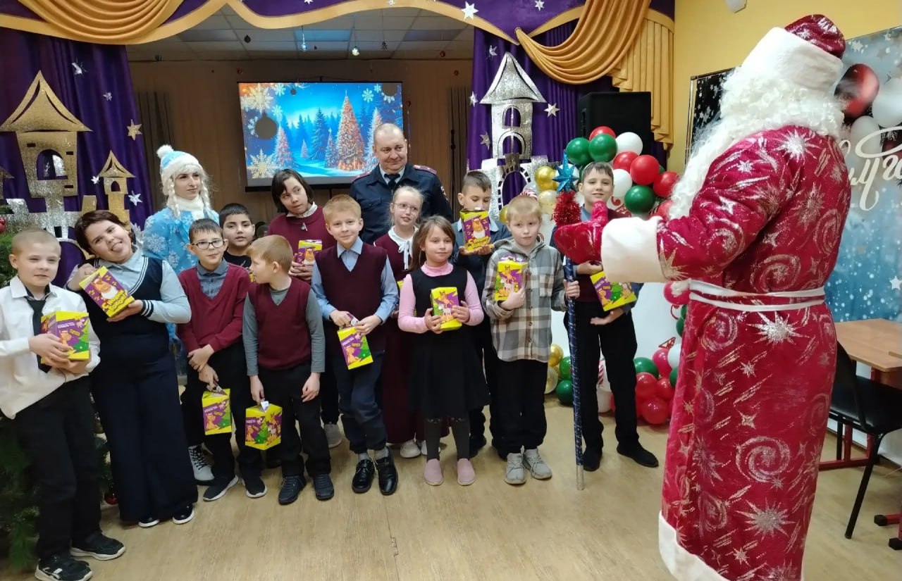 Полицейские в образах главных новогодних героев подарили учащимся младших классов настоящий праздник. В рамках развлекательной программы стражи порядка вместе с ребятами водили хороводы, пели новогодние песни и слушали стихотворения, которые подготовили школьники.