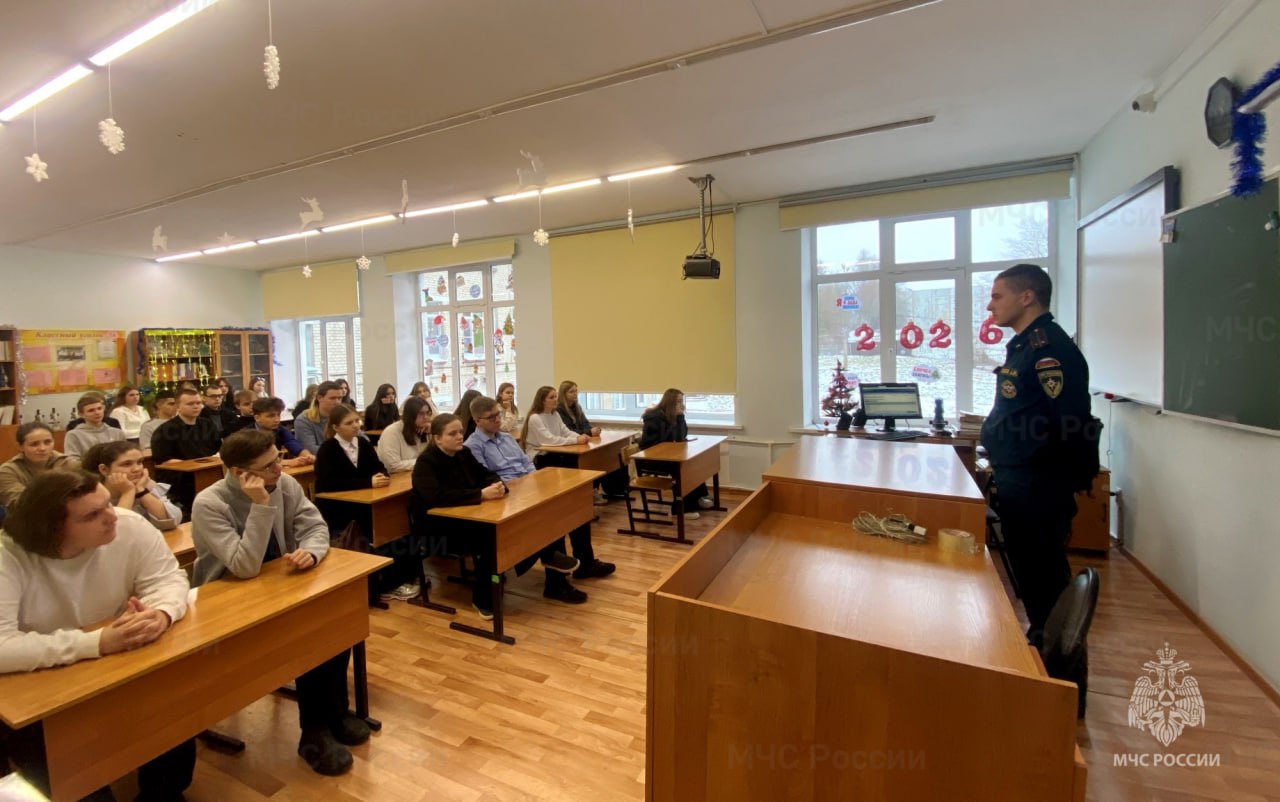 Инспекторы государственного пожарного надзора совместно с инспекторами ГИМС МЧС России встретились с учащимися школ, лицеев и колледжей, где поговорили со всеми присутствующими о правилах безопасности при использовании обогревательных приборов, опасности тонкого льда и запрете зимних игр у водоемов. Спасатели также напомнили детям номера телефонов вызова экстренных служб и алгоритм действий в случае чрезвычайной ситуации. Профилактика зимнего травматизма среди детей и подростков помогает сформировать у них культуру безопасного поведения, которая особо важна в холодное время года.