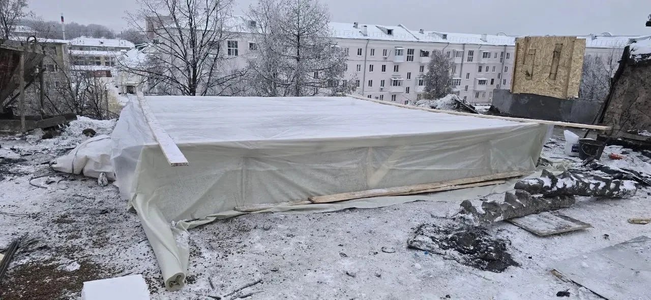 Восстановительные работы на кровле дома по улице Комсомольской в Новомосковске, пострадавшем в результате атаки БПЛА, вступили в активную фазу.
