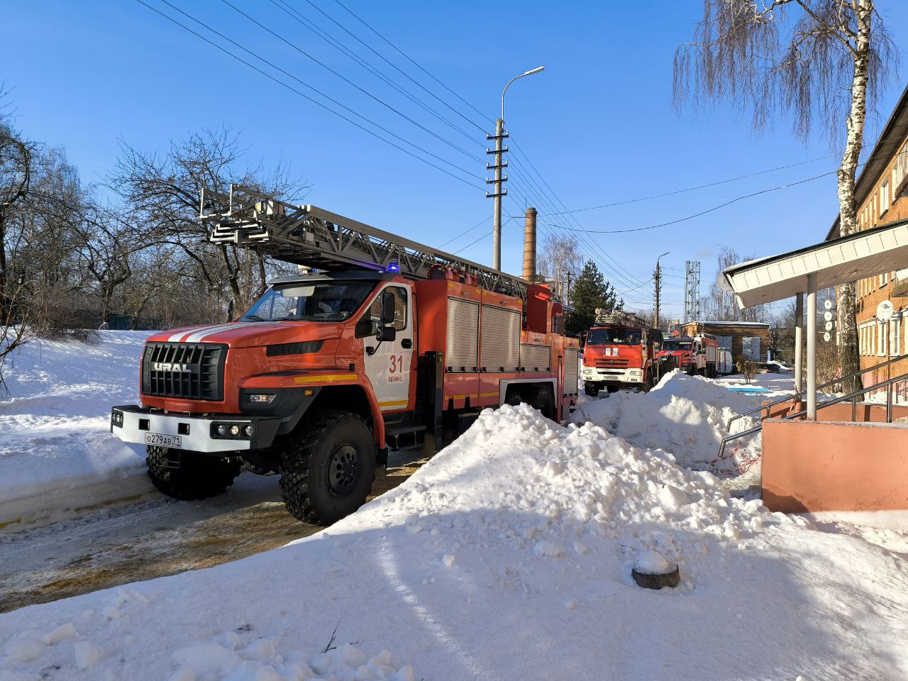 На кадрах щекинские огнеборцы приехали к месту возгорания в доме престарелых. Это архивное фото 2024 года.