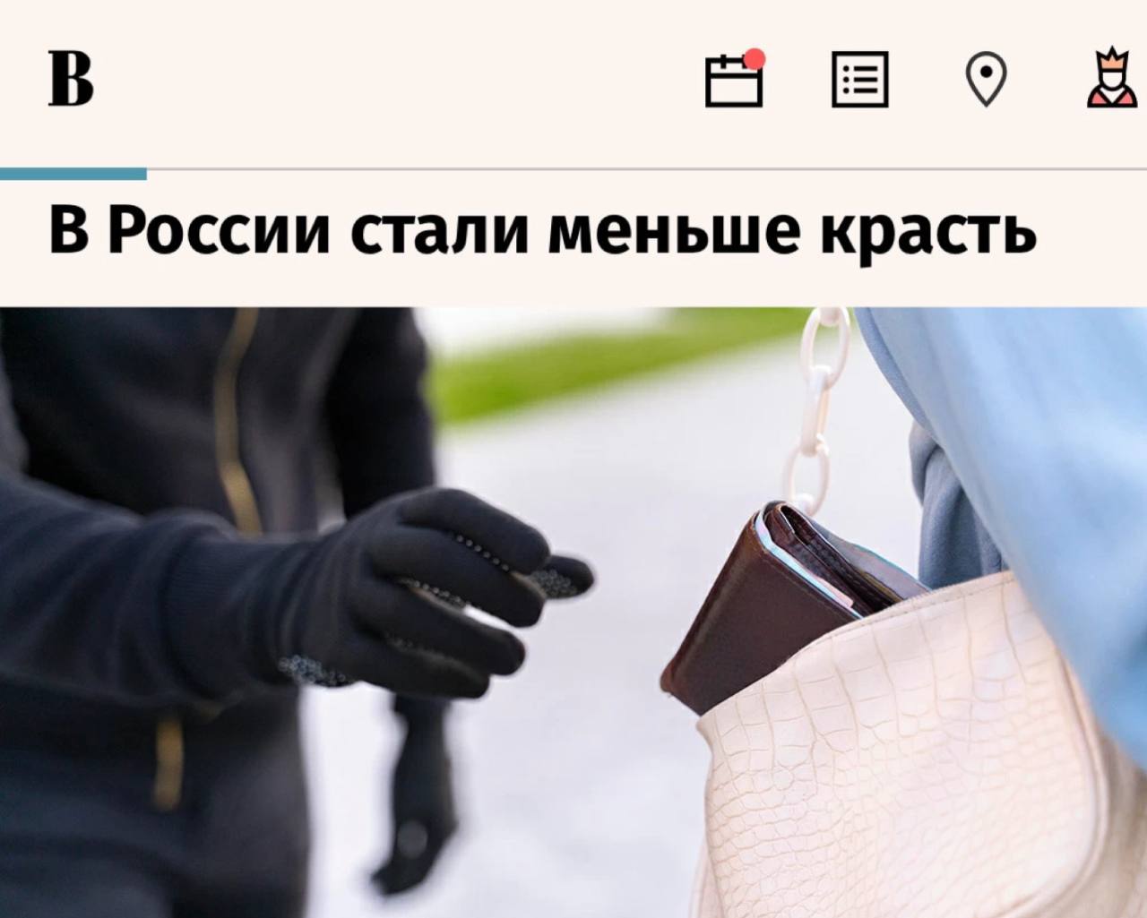 «В России стали меньше красть»: По статистике Верховного суда, количество соответствующих уголовных дел снизилось более чем на 10%.