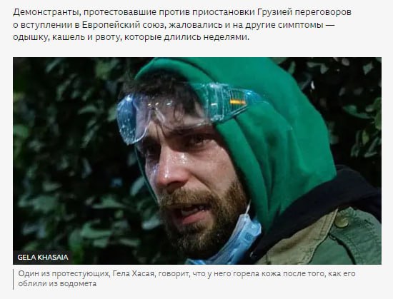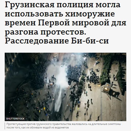 1 декабря канал опубликовал материал о том, что власти Грузии якобы использовали химоружие времен Первой мировой войны против протестующих в 2024 году. Речь идет о веществе камит, которое французские солдаты использовали против немцев.Служба госбезопасности Грузии провела расследование, определила, какие именно вещества закупило МВД за последние годы, и установила, что среди них не было запрещенных веществ. Более того, лишь у нескольких протестующих были легкие симптомы отравления, в то время как камит приводит к летальным последствиям.