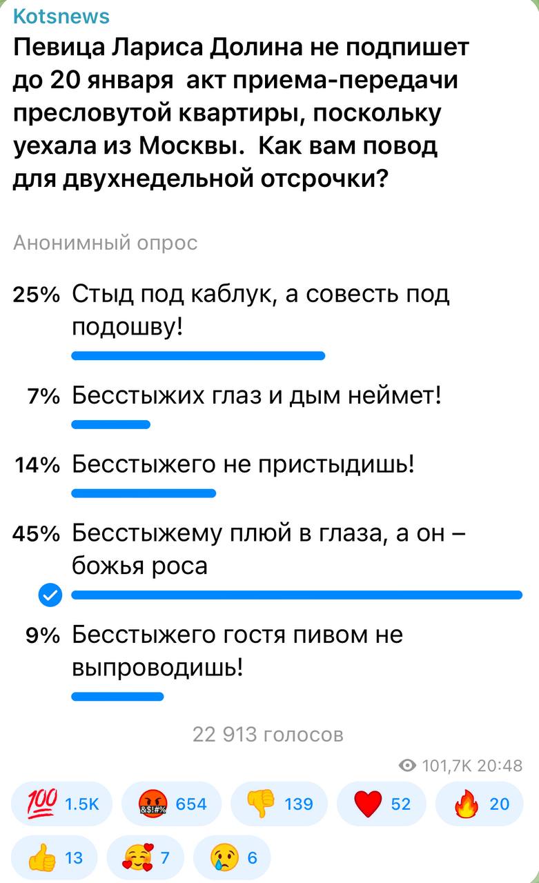 45 процентов подписчиков считают: бесстыжему плюй в глаза, а он - божья роса. Долина стремительно добивает остатки своей репутации.