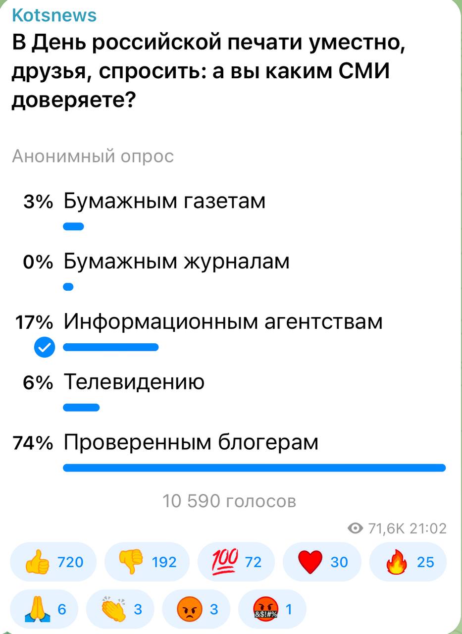 74 процента подписчиков доверяют, в первую очередь, проверенным блогерам. Интернет серьезно потеснил традиционные СМИ.