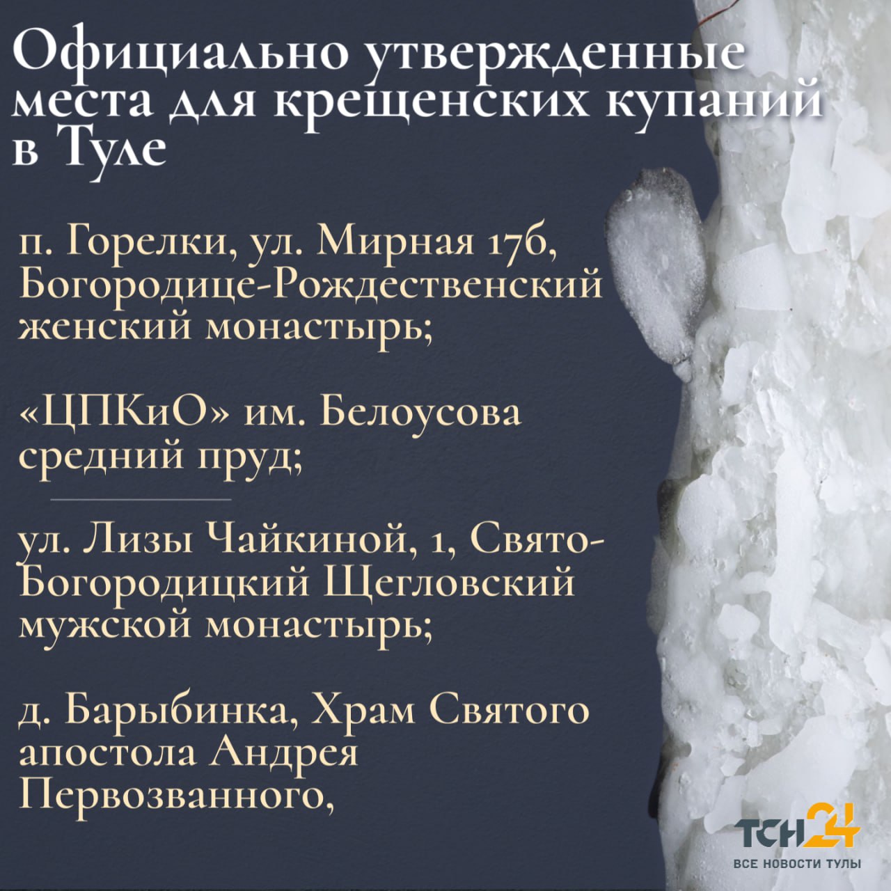 В период с 18 по 19 января на территории региона будут работать 36 официально утверждённых мест для Крещенских купаний, включая 4 — в границах городского округа Тула и 7 — на открытой воде.