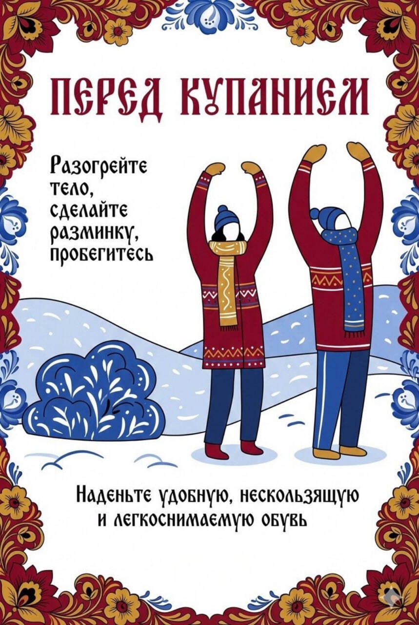 В дни купаний ожидаются сильные морозы. Перед купанием обязательно ознакомьтесь с правилами безопасности в наших карточках