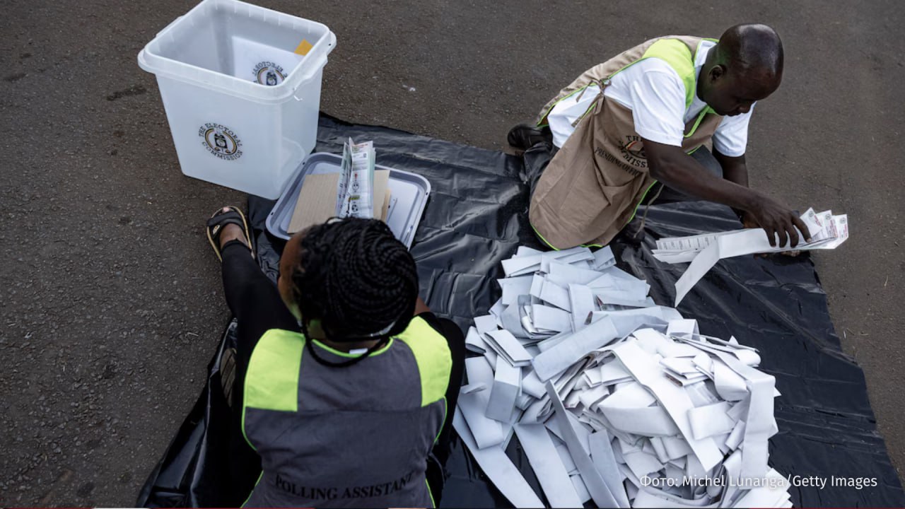 На фото — члены избирательной комиссии Уганды подсчитывают бюллетени 15 января в Кампале.