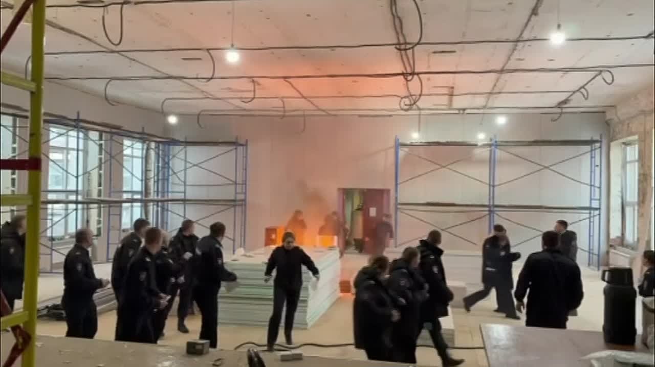 Момент взрыва в центре профподготовки МВД в Сыктывкаре. Огонь вспыхнул во время занятия по тактической и огневой подготовке. Пожар не удалось потушить, и огонь начал распространяться.