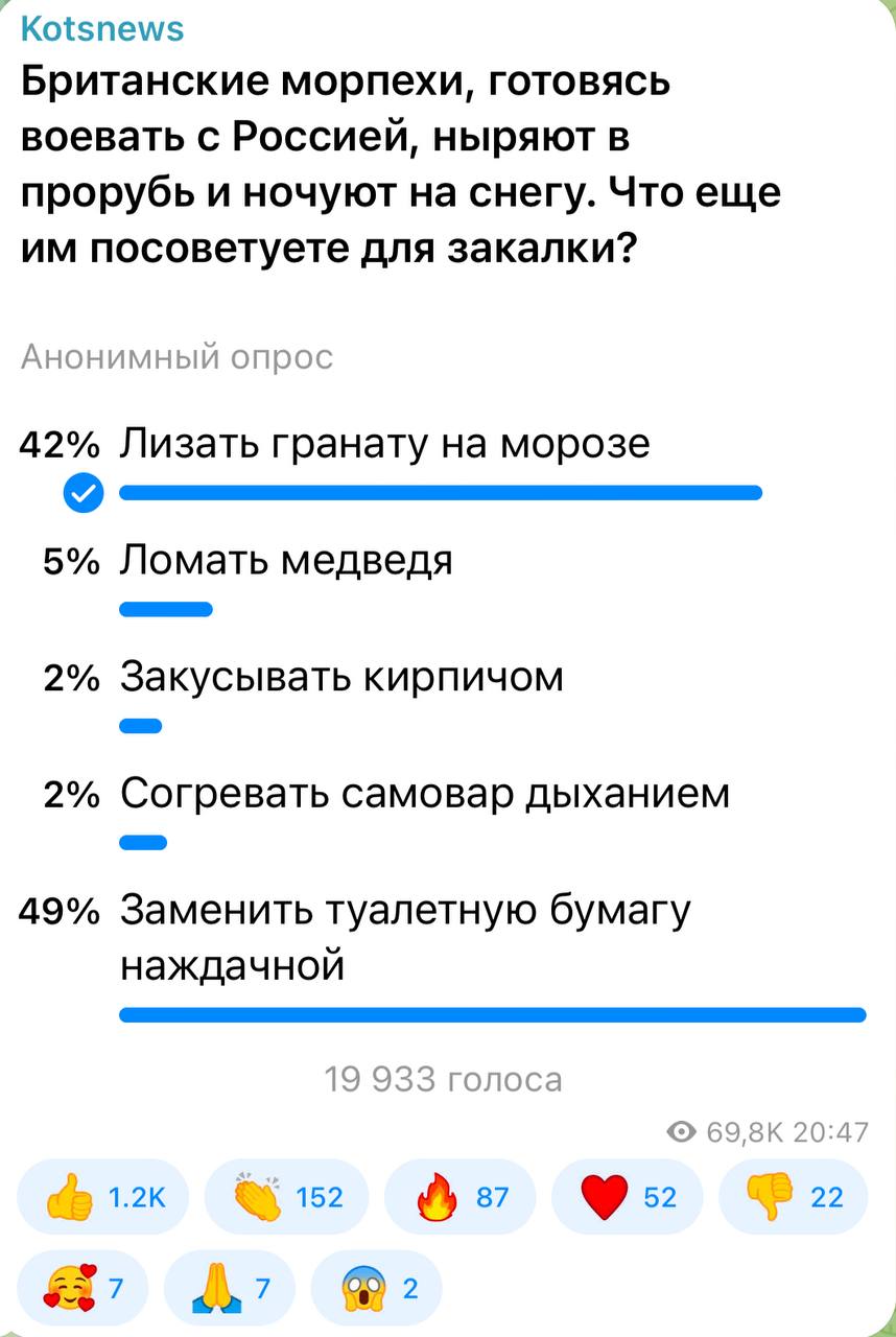 49 процентов подписчиков считают, что британцам следовало бы научиться подтираться наждачкой. Толку больше будет, чем от водных процедур.
