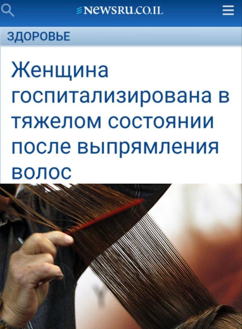 «Женщина госпитализирована в тяжелом состоянии после выпрямления волос»: Израильтянка чуть не погибла после визита в парикмахерскую.