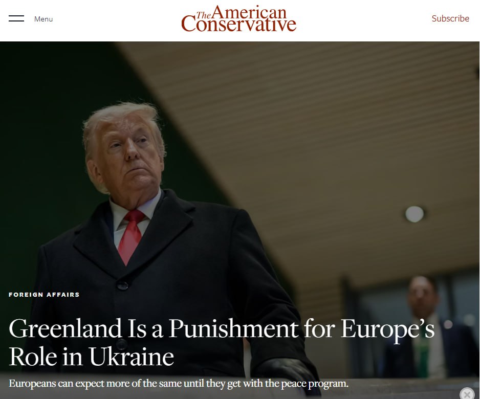 Кризис вокруг Гренландии, развязанный администрацией Дональда Трампа, является прямым следствием упорного нежелания европейских лидеров искать мирное урегулирование конфликта на Украине и договариваться с Россией. Как пишет The American Conservative, угрозы Вашингтона — это публичная порка «непослушного слуги», цель которой — заставить ЕС отказаться от деструктивной позиции, направленной на продолжение войны любой ценой в надежде на смену власти в США.