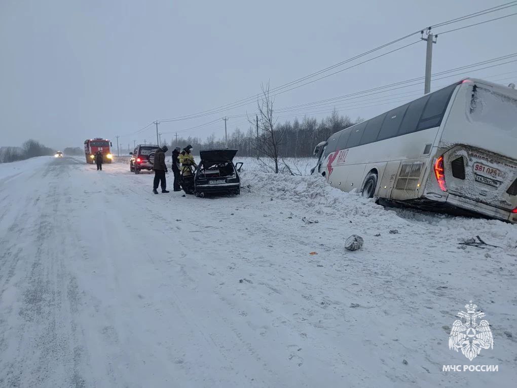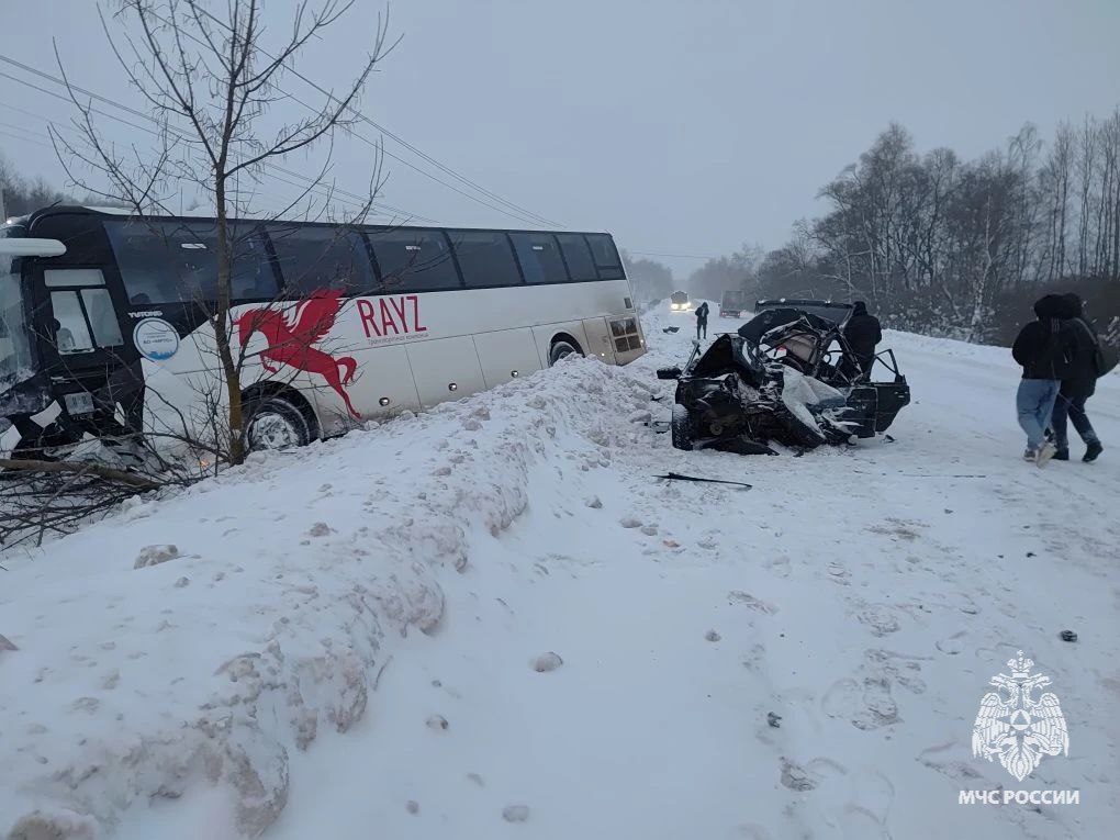 Появились фотографии с места смертельного ДТП с автобусом в Алексинском районе