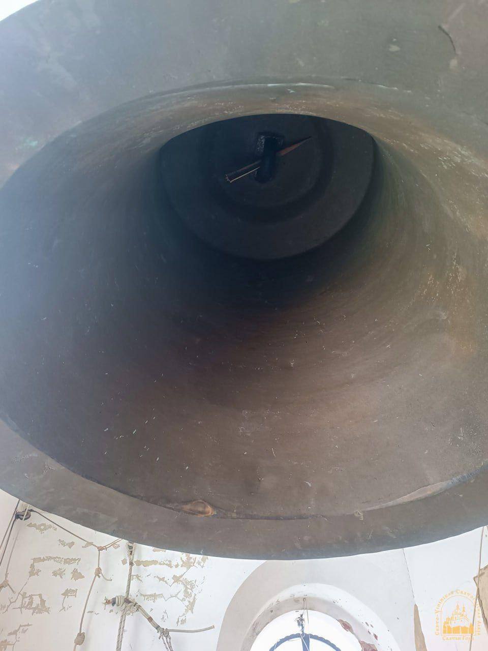 Оказывается, во время ограбления Святогорской Лавры в Богородичном со звонницы не просто исчезли 8 из 10 колоколов. Помимо кражи, мародеры вырвали язык у центрального колокола весом около 1,3 тонны, второй по величине колокол весом около 600 кг сбросили на пол. У колоколов поменьше, которые были украдены, тоже были вырваны и брошены языки.