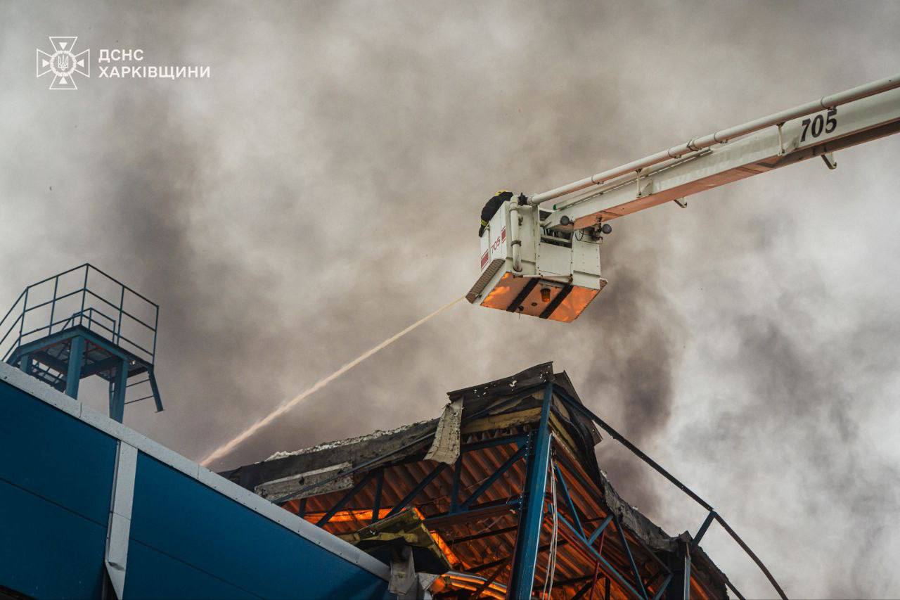 ВС РФ нанесли ракетный удар по складскому зданию предприятия в пригороде Харькова: произошел масштабный пожар на площади более 5000 кв.м