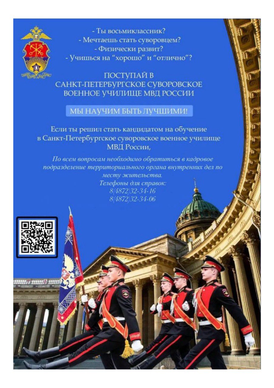 Госавтоинспекция информирует, что Санкт-Петербургское военное училище МВД России проводит набор кандидатов на обучение в 2026 году.