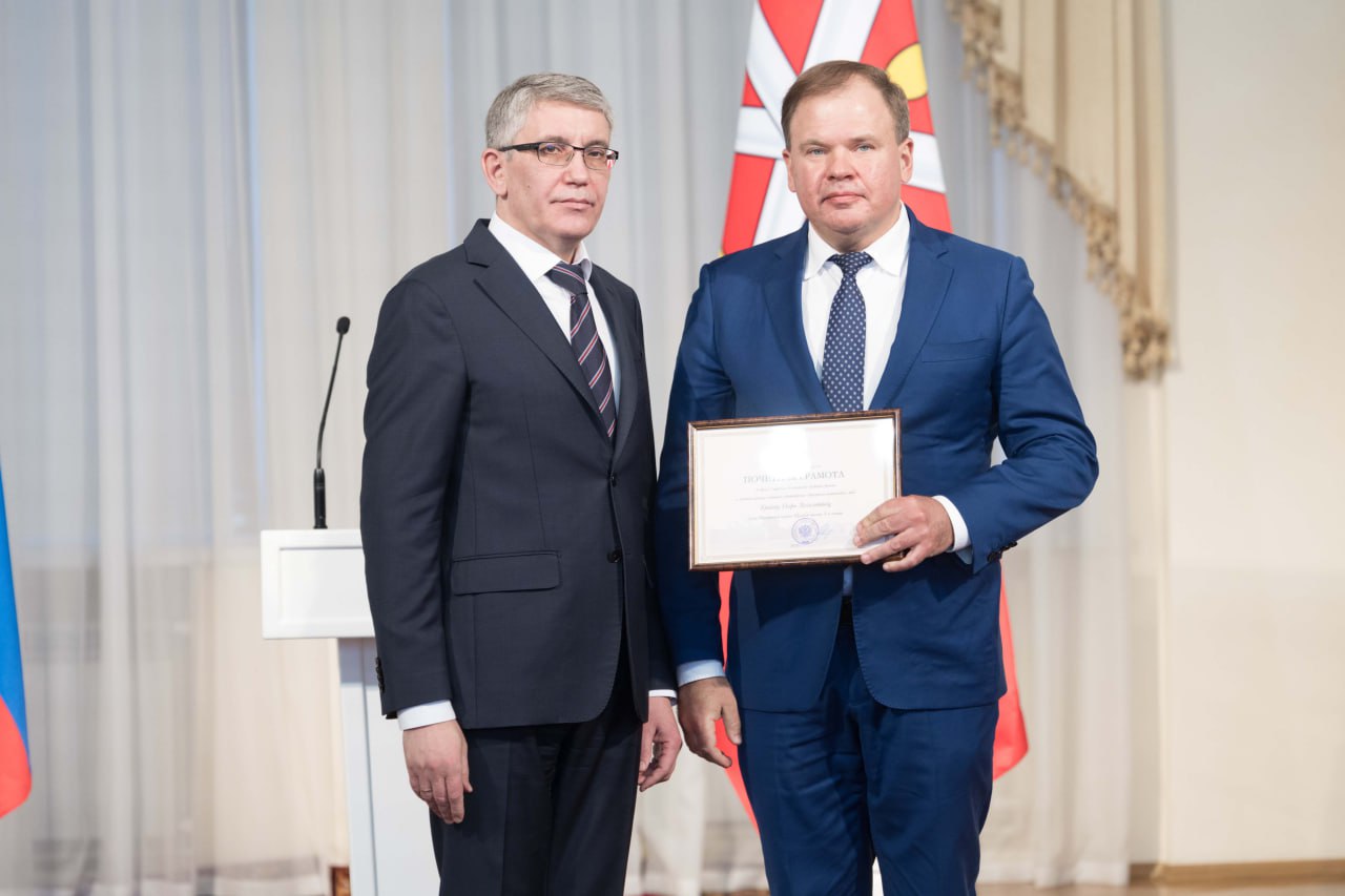 В рамках торжественной части за вклад в социально-экономическое развитие региона и активное участие в решении приоритетных общественно-политических задач Губернатор Дмитрий Миляев вручил почетную грамоту председателю Общественного совета при УМВД России по Тульской области и члену региональной Общественной палаты Игорю Крюкову.