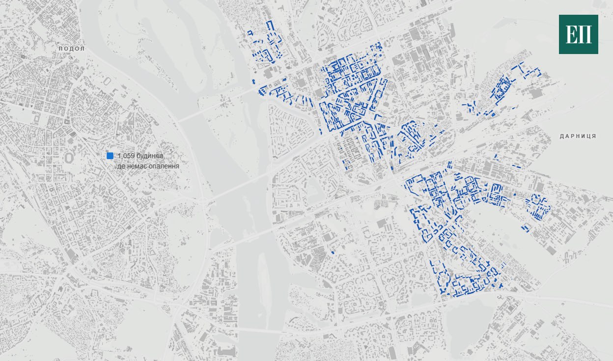 СМИ публикуют инфографику домов в Киеве, которые останутся без тепла до конца отопительного сезона из-за критических повреждений Дарницкой ТЭЦ.