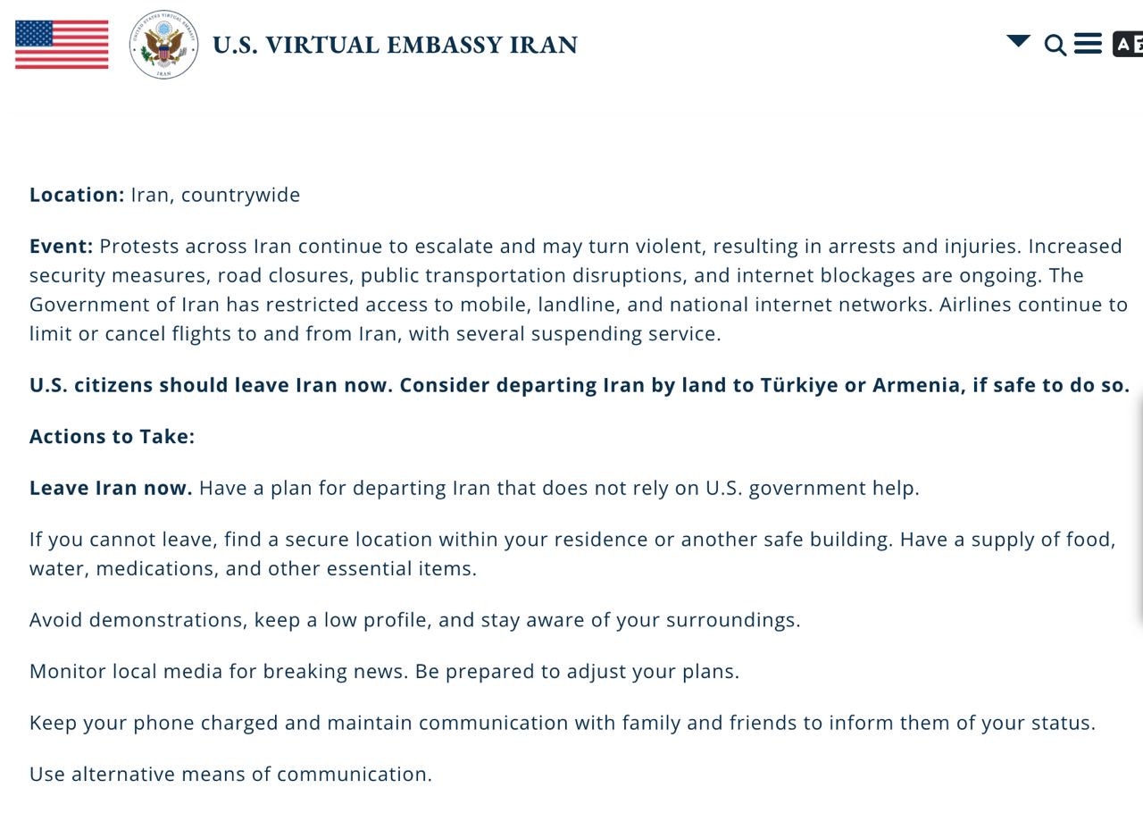 "Гражданам США следует немедленно покинуть Иран. Рассмотрите возможность