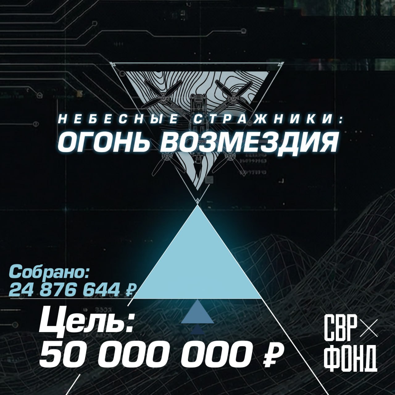 Мы уже собрали почти 25 миллионов рублей на закупку беспилотников и помощь пострадавшим регионам в рамках марафона «Небесные стражники: огонь возмездия»! Конечная цель — 50 миллионов, и мы приближаемся к ней всё быстрее!