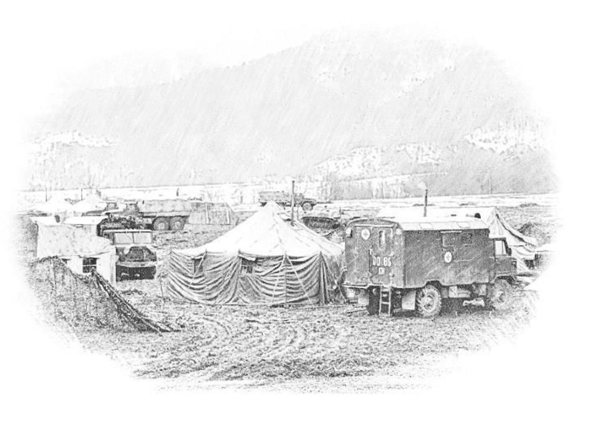 Горы огромным полукольцом. Туманы. Ночные, утренние, вечерние, дневные, круглосуточные. Палатки. Лагерь обнесён МЗП и колючей проволокой.