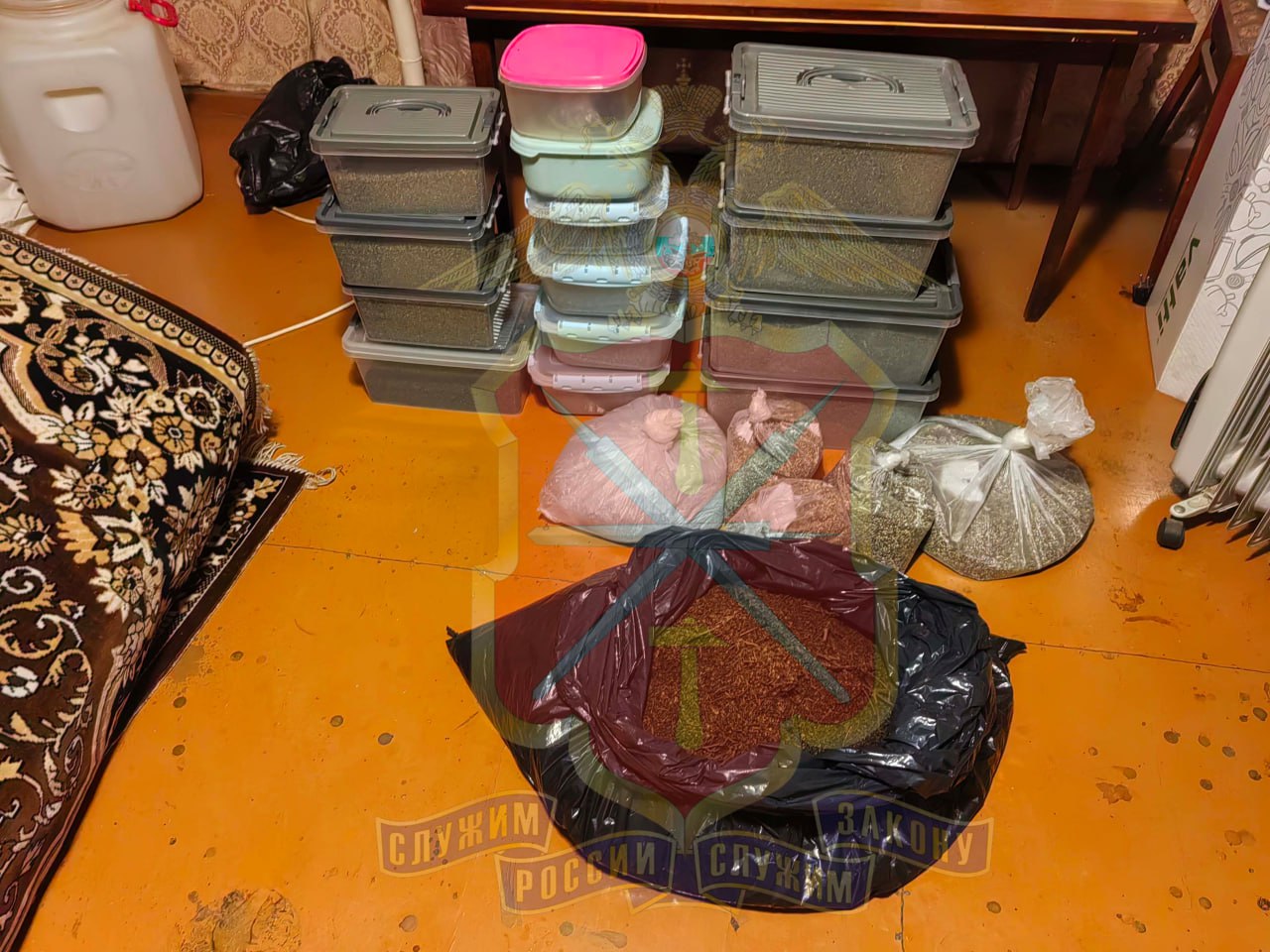 При проведении обыска по месту жительства подозреваемого полицейские обнаружили и изъяли пакеты и растения с веществом растительного происхождения зеленого цвета. Предварительно общий вес изъятого составил около 10 килограммов. В виду большого объема и веса часть была направлена на исследование в ЭКЦ УМВД России по Тульской области.